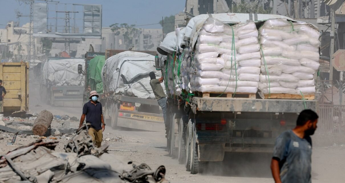 Israel disse às Nações Unidas na terça-feira que permitiria apenas 300 caminhões de ajuda por dia na Faixa de Gaza a partir de quarta-feira – metade do número inicialmente acordado.
