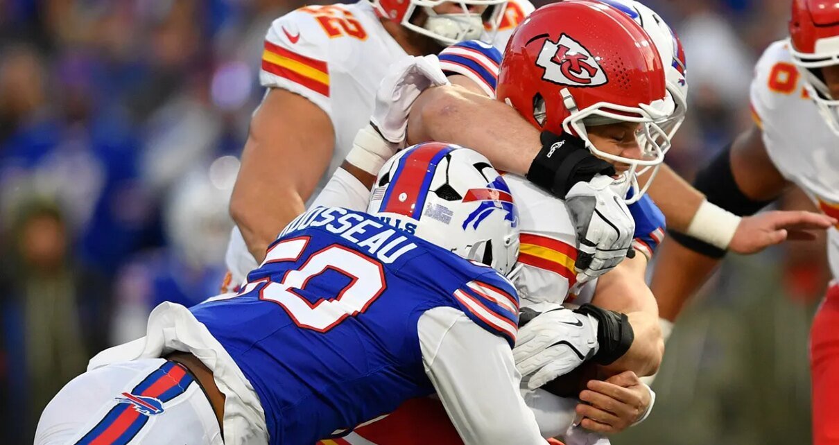Buffalo parece ter decifrado o código para manter Mahomes afastado, apesar do quarterback armado em punho encontrar consistentemente seus alvos para completar 28 jardas ou mais.