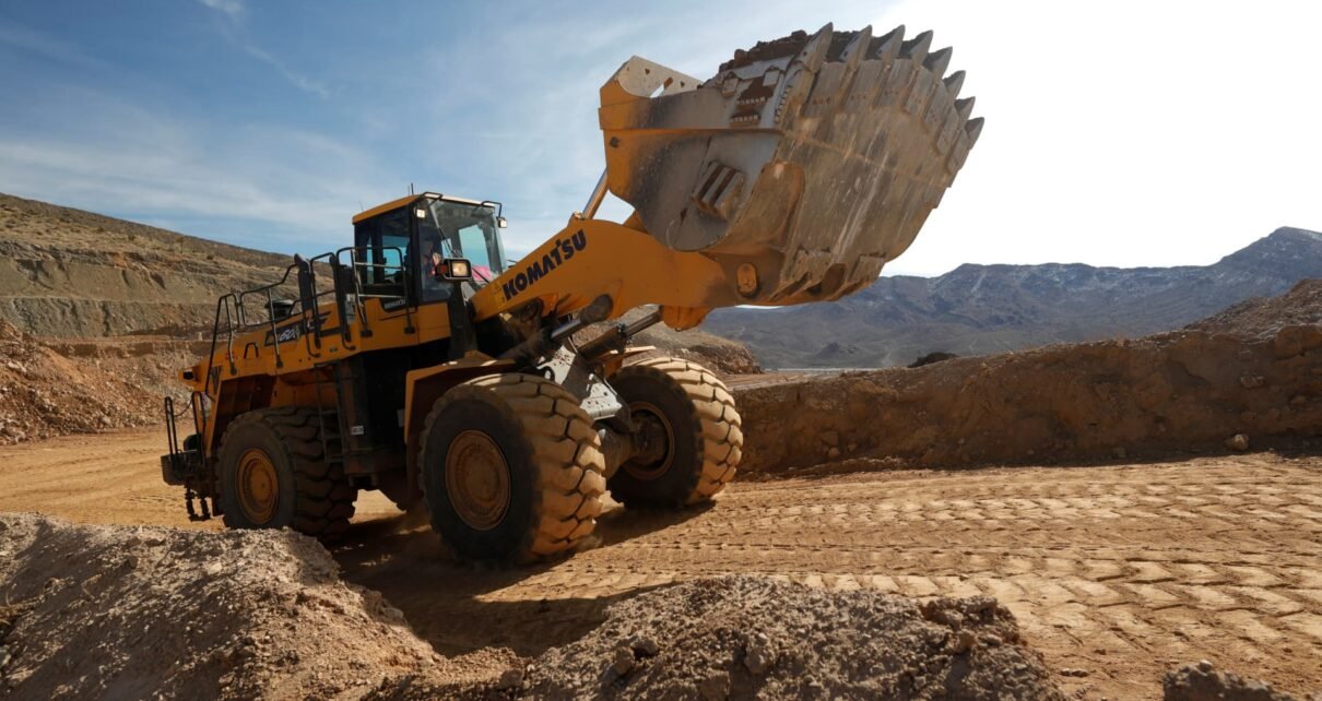Uma carregadeira de rodas transporta minério para um britador na mina de terras raras da MP Materials em Mountain Pass, Califórnia, Estados Unidos, em 30 de janeiro de 2020.